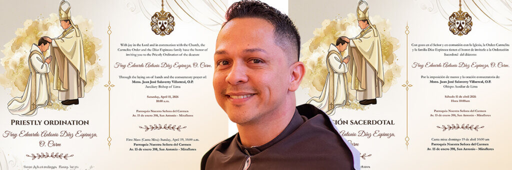 Share in the joy of the Priestly Ordination of Eduardo Antonio DÍAZ ESPINOZA, O.Carm., by watching live on April 11, 2026 at 10:00am on the