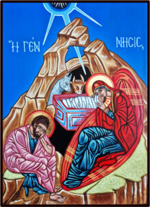 В центре иконы изображен младенец Иисус, завернутый в пеленки, похожие на погребальный саван. Ясли Иисуса изображены в виде гроба, что привлекает нас к Его искупительной любви.